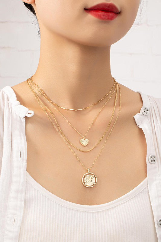Indulge in the luxuriousness of this 4 row delicate chain choker, adorned with heart and coin pendants. Crafted from brass and iron chain and embellished with an alloy pendant, featuring a gleaming gold plating. Size: 15-17-20-21" + 3" extender