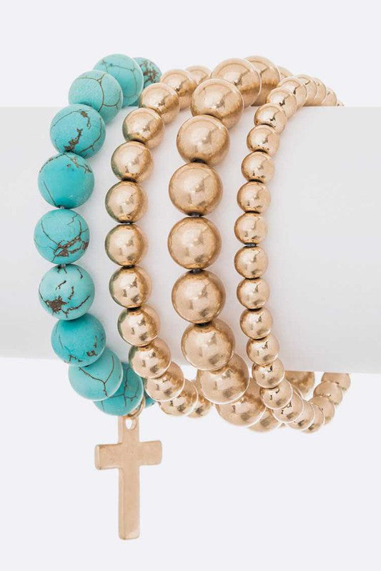 Add some divine style to your wrist with this Layered Beads Cross Charm Bracelet Set. Featuring multiple layers of trendy beads and a playful cross charm, this bracelet set is the perfect quirky addition to any outfit. Spread some holy fashion vibes and make a statement with this must-have access...